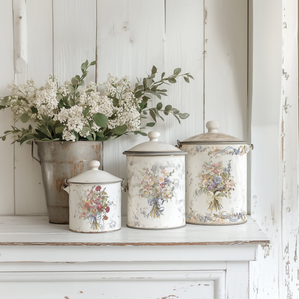 The Madeleine – 8-Page 12x16" Transfer Pad is reminiscent of vintage Parisian décor, with artwork so decadent and luscious you can almost feel the richness of the original paint. The florals are vibrant, full, and deeply saturated, and the style closely echoes the St. Germaine collection—likely by the same unnamed artist whose work has long inspired us. The name Madeleine was chosen as a nod to a small French town near Saint-Germain, tying it back to the origins of the artwork. Several elements, including the flowing ribbons, were hand-painted by a contemporary artist, Annie Quigley, specifically for this collection to complement the vintage roses, birds, bows, and swags found in the original compilations.